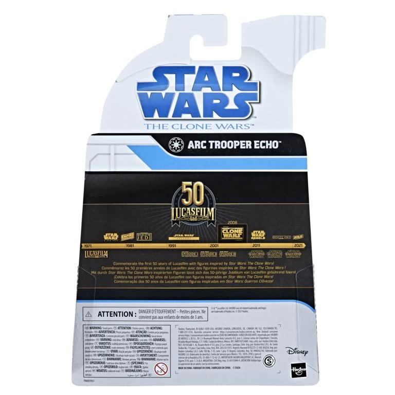 Commemorate the first 50 years of LUCASFILM with figures from STAR WARS: THE BLACK SERIES, featuring STAR WARS: THE CLONE WARS-inspired packaging.